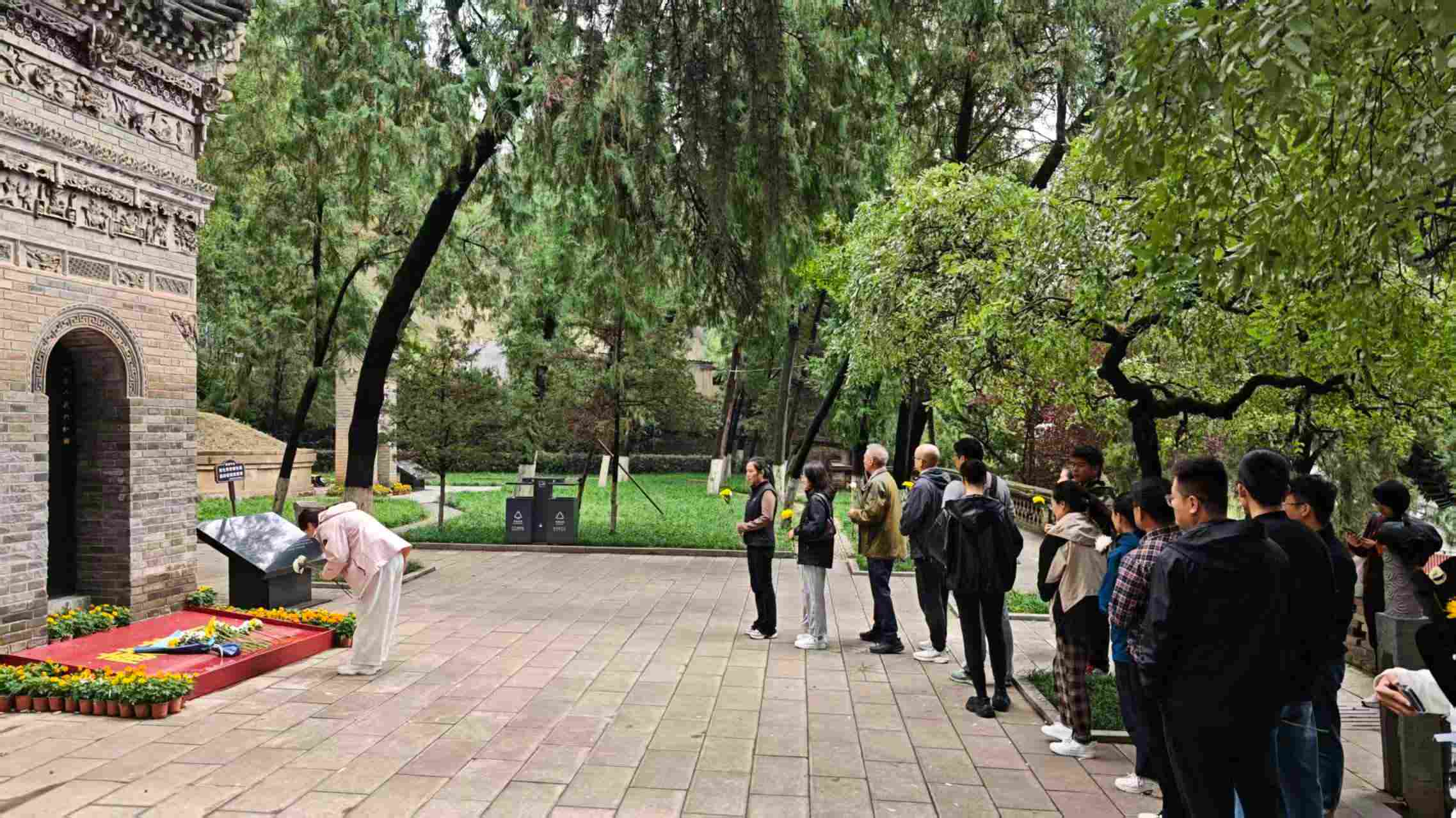 丰碑寂寂藏风骨,青山郁郁蕴哀思。怀着对先烈的追思,全体人员肃立默哀、敬献花束。静默间,杨虎城将军在民族危亡时的凛然身影、那段烽火交织的峥嵘岁月悄然浮现,他为国家独立、民族解放奉献一切的革命精神与炽热的家国情怀,在这一刻愈发清晰厚重。