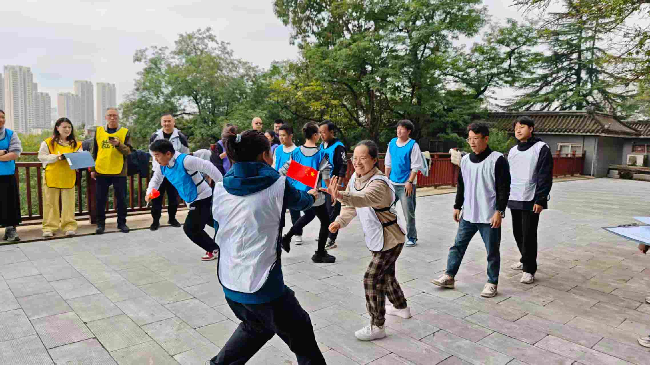 为纪念中国人民抗日战争暨世界反法西斯战争胜利80周年、中华人民共和国成立76周年这一重要历史节点,10月18日上午,大地测绘、测量所公司、地籍公司、兴农惠民在杨虎城将军陵园联合举办了“丈量红色坐标 打卡革命印记”红色主题运动会。