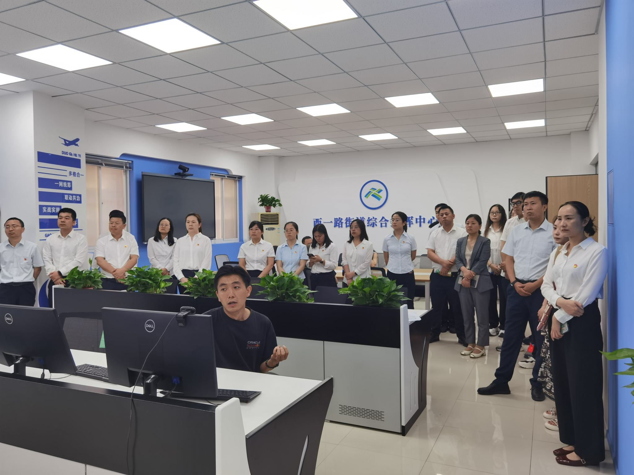 在综合指挥中心,党员干部深入了解了智慧街道服务管理系统建设情况,工作人员详细介绍了信息平台网格化管理、突发应急情况处理、综治信息化运行等情况,全方位展示了街道运用信息化手段实现城市基层治理科学化、便捷化、高效化的成果。